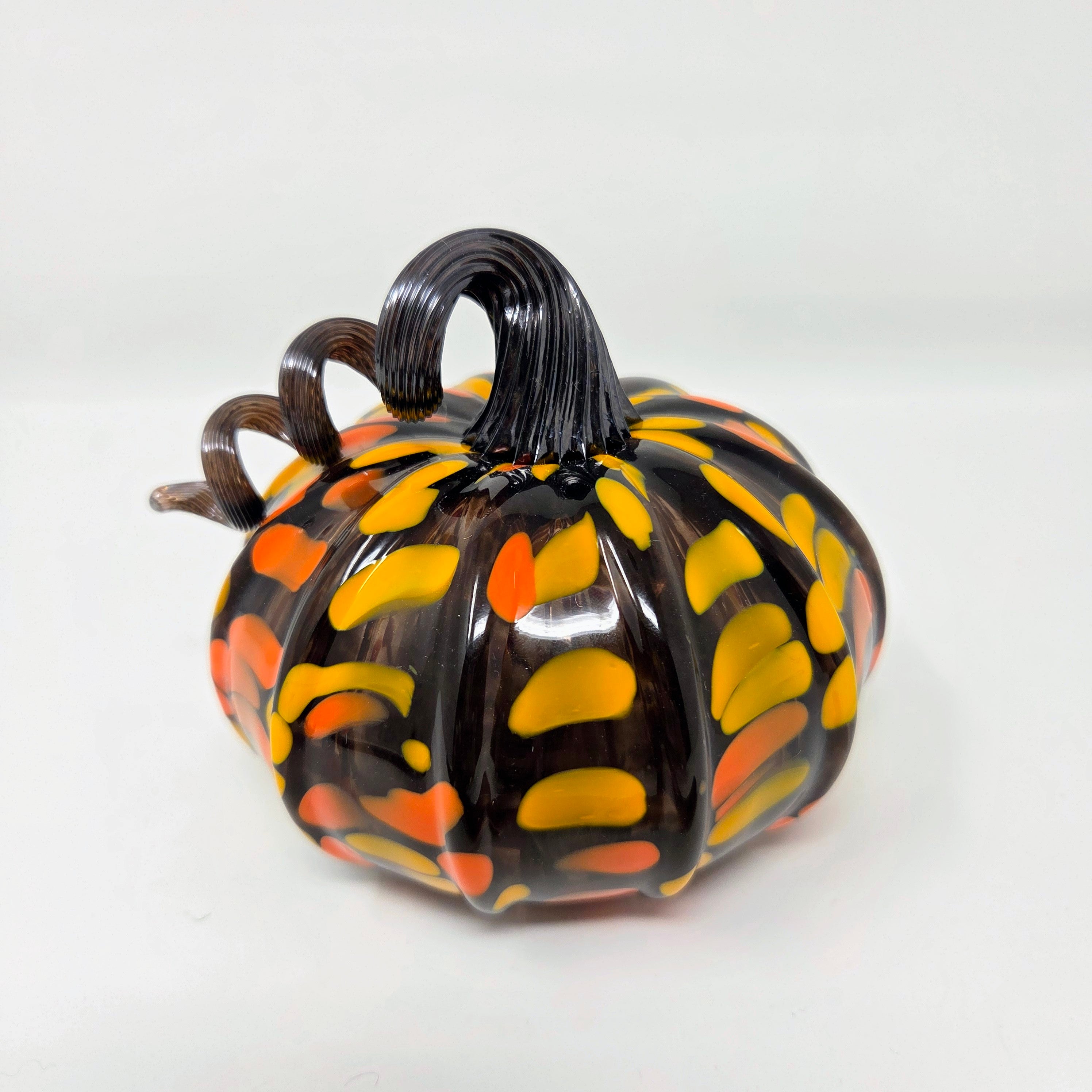 Blown Glass Pumpkin- Black with Opaque Orange and Yellow Spots