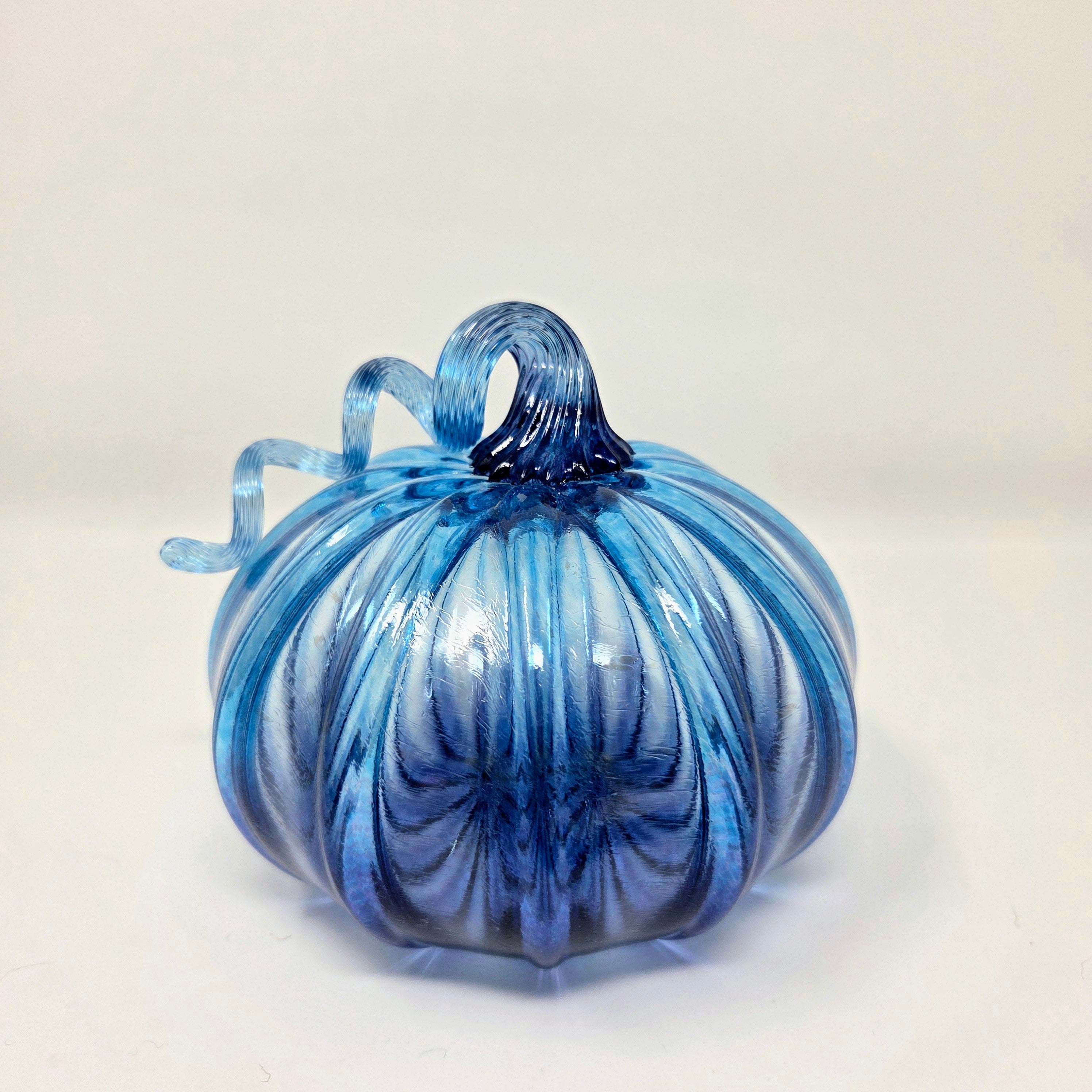 Blown Glass Pumpkin- Transparent Light Blue with Amethyst Fade